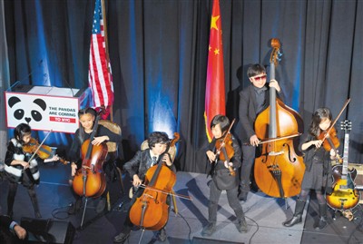 2月8日,一支儿童弦乐团在筹款晚会上表演。