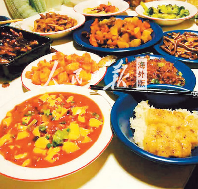 何佳妮和同学们做好的除夕年夜饭