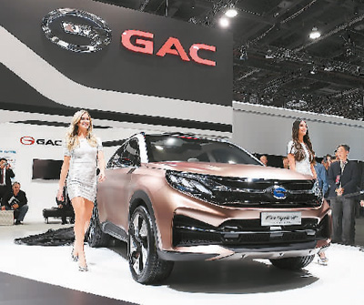 1月9日,在美国底特律举行的北美国际汽车展上,广汽集团发布插电式混合动力跨界概念车EnSpirit。