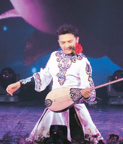 当地时间2月7日,“文化中国·四海同春”在法国巴黎演出,维吾尔族舞者玉米提在表演舞蹈《可爱的一朵玫瑰花》。