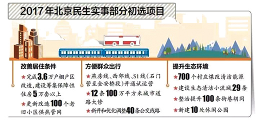 去年,北京市为群众办理的28件重要民生实事项目全部落实。今年,北京市拟办实事翻开了新篇章。近日,北京市举办2017年重要民生实事初选项目网络投票活动,邀请市民对今年重要民生实事项目进行投票,参与权再次交到了每一位市民手中。