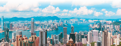 香港维多利亚港,中国银行、汇丰银行等金融机构皆汇聚于港湾附近的中环地区。