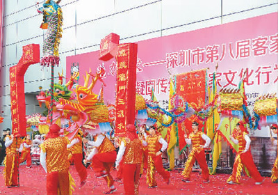 深圳的年味不仅蕴藏在丰富的“吃文化”中,而且表现在锣鼓喧天的“闹文化”中。春节期间,无论是深圳东部的南澳渔村,还是西部的松岗水乡、南面濒海的沙头角中英街,抑或北边的平湖老围,都在敲打大锣大鼓,操练舞草龙、舞狮子、舞鱼灯、舞纸龙和舞麒麟等。
