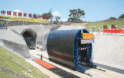 由中国交通建设股份有限公司承建的肯尼亚内罗毕-马拉巴标轨铁路(内马铁路)项目第一期去年10月19日正式开工。图为内马铁路一期工程的一处施工现场。