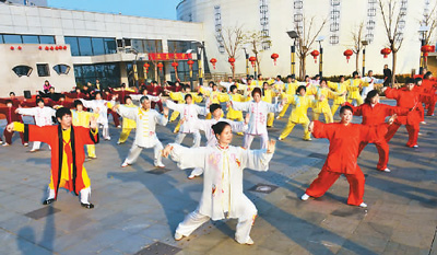 人们在清新空气的环境中晨练。