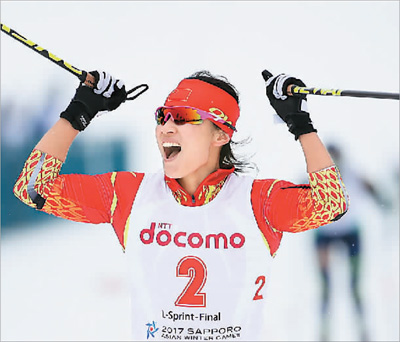 2月20日,在日本札幌举行的第八届亚洲冬季运动会越野滑雪女子1.4公里个人竞速赛中,满丹丹以3分48秒29的成绩夺得冠军,为中国代表团赢得首金。