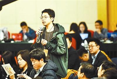 北京青年报记者在向教育部长提问 摄影/北京青年报记者 郝羿