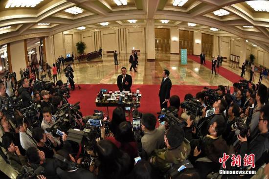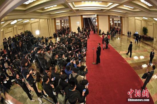 3月5日,十二届全国人大五次会议在北京人民大会堂开幕。记者云集“部长通道”。中新社记者 泱波 摄