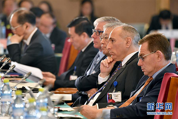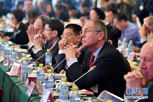 3月19日,与会者听取嘉宾发言。当日,中国发展高层论坛2017年年会在北京开幕。本届中国发展高层论坛由国务院发展研究中心主办,主题是“中国与世界:经济转型和结构改革”。来自国内外的专家学者、企业家、政府官员和国际机构代表参加开幕式。