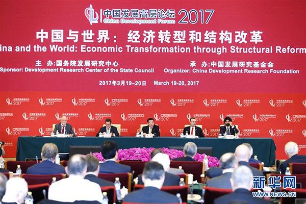 3月19日,中国发展高层论坛2017年年会在北京开幕。本届中国发展高层论坛由国务院发展研究中心主办,主题是“中国与世界:经济转型和结构改革”。来自国内外的专家学者、企业家、政府官员和国际机构代表参加开幕式。
