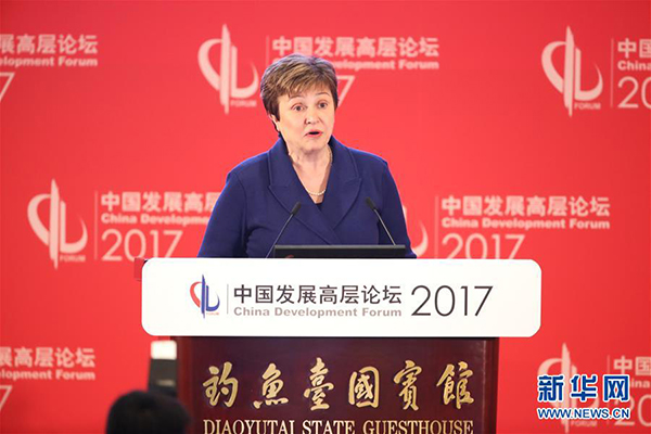 3月19日,世界银行首席执行官克里斯塔利娜·格奥尔基耶娃在“深化供给侧结构性改革”讨论单元发言。当日,中国发展高层论坛2017年年会在北京开幕。本届中国发展高层论坛由国务院发展研究中心主办,主题是“中国与世界:经济转型和结构改革”。来自国内外的专家学者、企业家、政府官员和国际机构代表参加开幕式。