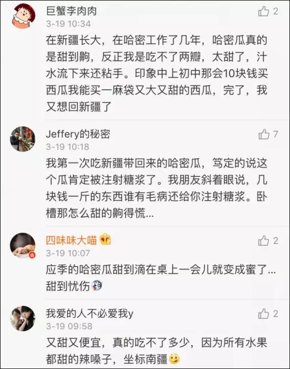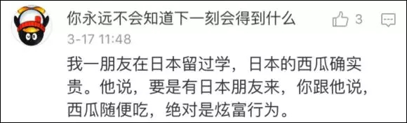 还有网友表示日本哈密瓜虽然贵,但是好吃啊,新疆哈密瓜表示不服,表示可以甜到让你怀疑人生。
