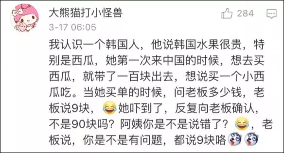 日韩网友在中国吃水果买西瓜的故事,都可以用惊掉下巴来形容。