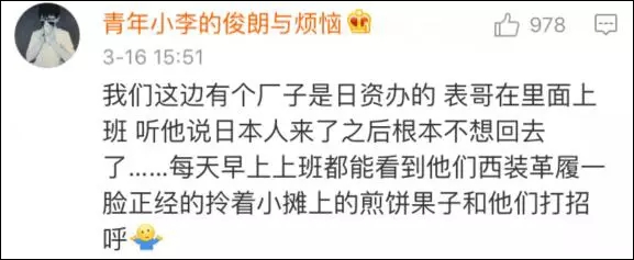 其中@一一 讲述了这样一个故事:有个在中国汽配厂做高管的日本人在退休后久居中国,舍不得离开。