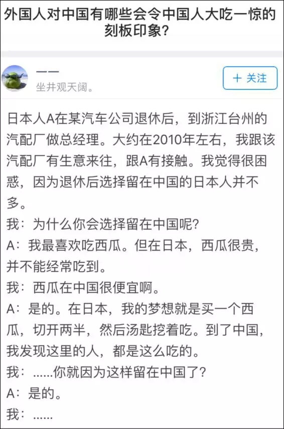 知乎上有一个“外国人对中国有哪些会令中国人大吃一惊的刻板印象?”的帖子。