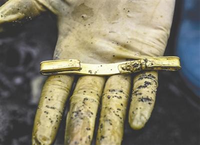 3月16日下午,考古队终于在发掘区域的最北端发现一块相对完整的木鞘,木鞘腐烂的一端,露出了白花花的银锭,仍旧反射出贵金属的光芒。在考古发掘现场附近的工作站,记者见到部分出水文物,各类金银器物、钱币上的文字大都清晰可辨,各种金银首饰上的花纹依然精致。这让身经百战见多识广的考古人员也感慨地说,“那叫一个震撼!”