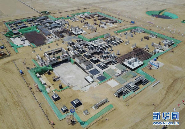 3月21日在巴基斯坦俾路支省胡布地区用无人机拍摄的胡布燃煤电厂施工现场。