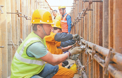 红狮希望水泥厂项目为当地带来500多个就业岗位,建成后将提供1000多个就业机会。图为中尼工人在工地上一起工作。 苑基荣 摄