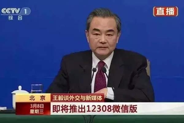 是的,这就是半个月前,中国外交部长王毅在全国“两会”记者会预告的“12308微信版”。