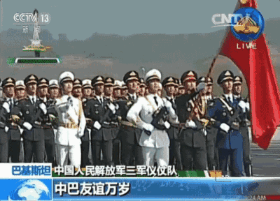 仪仗队步伐整齐划一,延续了一直以来的高水平,战士们用当地语言——乌尔都语高喊口号:中巴友谊万岁!
