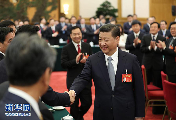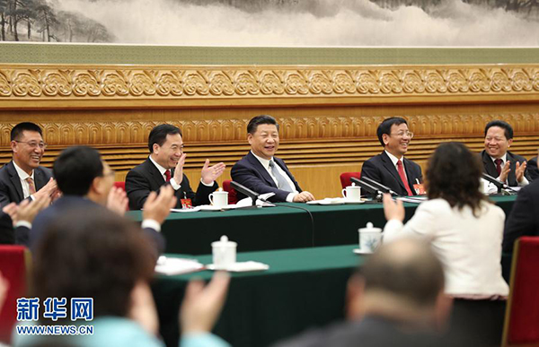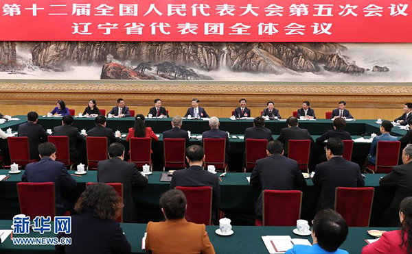 图为:2017年3月7日,中共中央总书记、国家主席、中央军委主席习近平参加十二届全国人大五次会议辽宁代表团的审议。