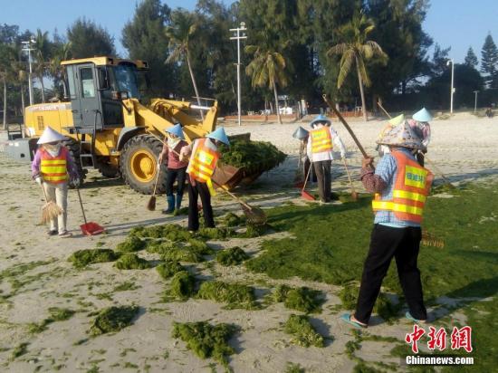 资料图:广西北海银滩景区曾遭受海藻侵袭,3天清理81吨。向明 摄