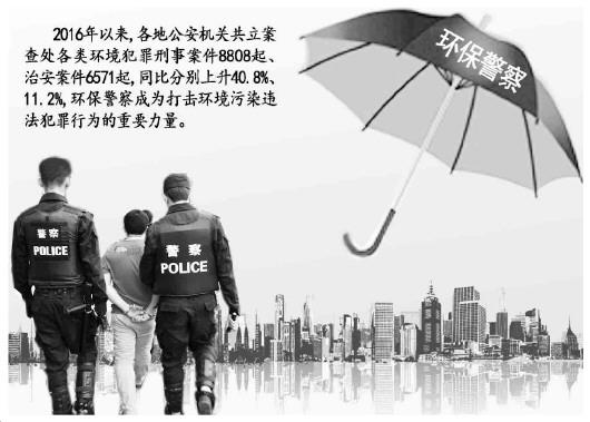 数据显示,2016年以来,各地公安机关共立案查处各类环境犯罪刑事案件8808起、治安案件6571起,同比分别上升40.8%、11.2%,环保警察成为打击环境污染违法犯罪行为的重要力量。