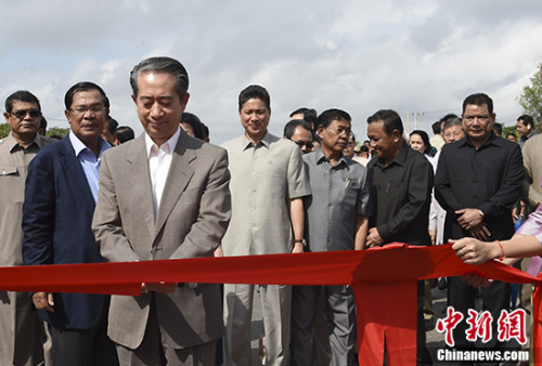 中国驻柬大使熊波剪彩。 中新社记者 黄耀辉 摄