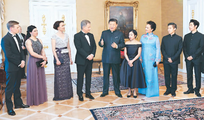 当地时间5日晚,国家主席习近平和芬兰总统尼尼斯托在赫尔辛基共同会见刚刚参加完2017年世界花样滑冰锦标赛的中芬两国冰雪运动员代表。
