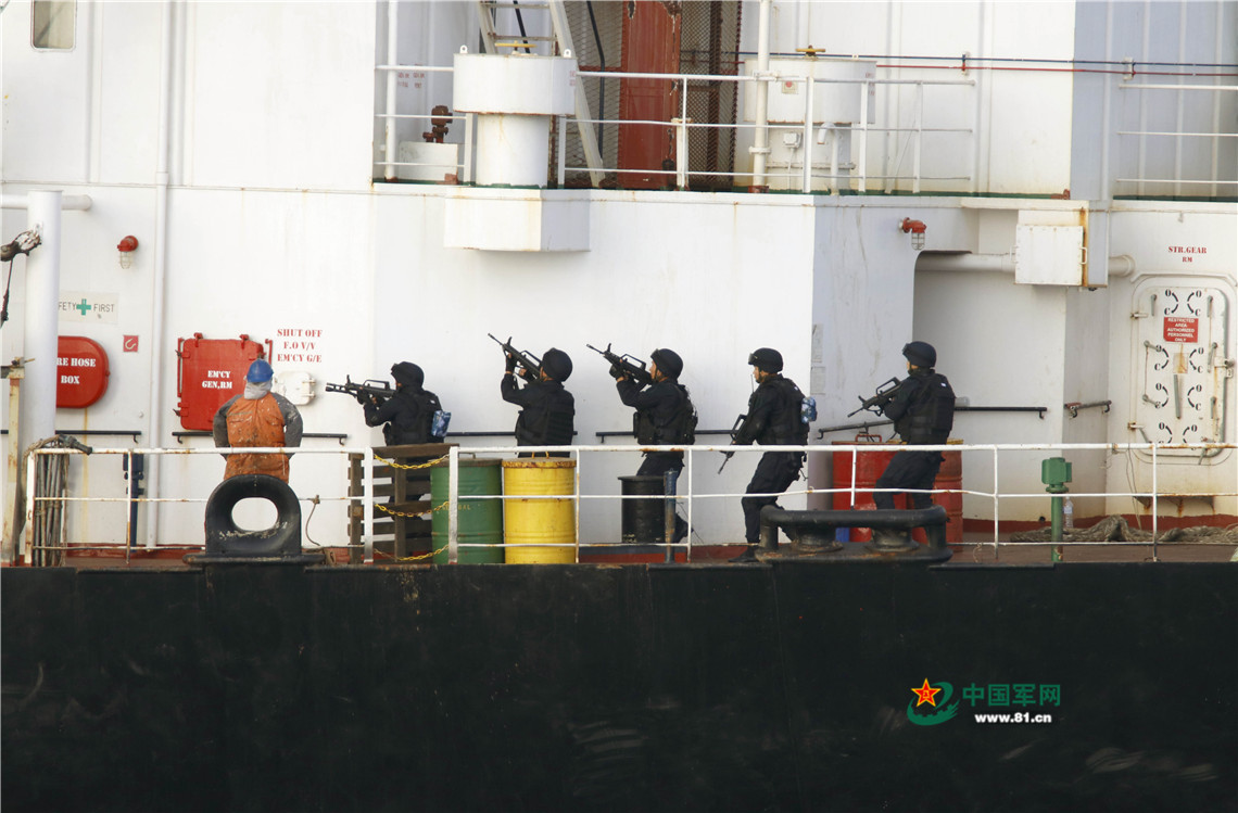 海军特战队员快速登入货船展开营救活动。牛云海 摄