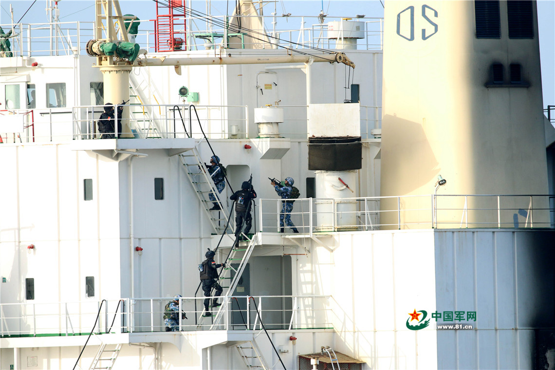 海军特战队员快速登入货船展开营救活动。牛云海 摄