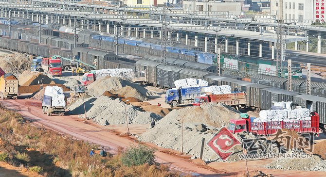 在位于昆明晋宁区的腾俊国际陆港产业基地,智能化仓储区陆路货物装卸储运和泛亚铁路中线货场装卸业务格外忙碌;而在项目建设区,保税物流中心和冷链仓储区项目建设也正在加紧推进。