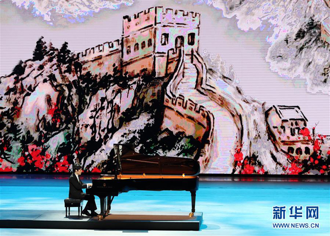 5月14日晚,“一带一路”国际合作高峰论坛文艺演出《千年之约》在北京国家大剧院举行。这是演员在表演钢琴演奏节目《北京四季》。新华社记者王晔摄