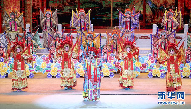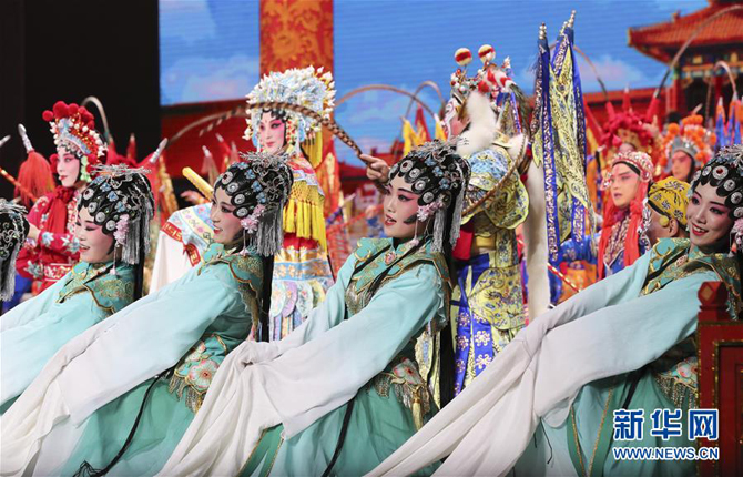 5月14日晚,“一带一路”国际合作高峰论坛文艺演出《千年之约》在北京国家大剧院举行。这是演员在表演节目《群英荟萃》。 新华社记者丁林摄