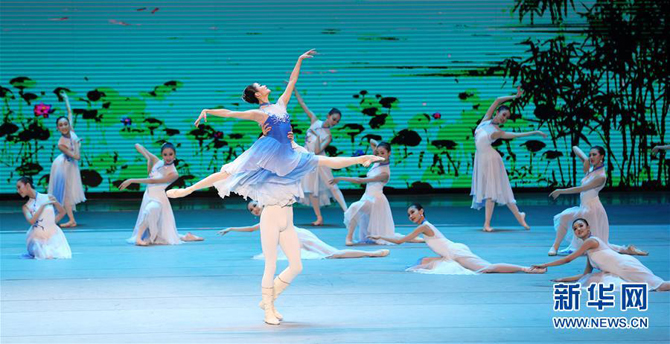 5月14日晚,“一带一路”国际合作高峰论坛文艺演出《千年之约》在北京国家大剧院举行。这是演员在表演节目《水墨丝语》。 新华社记者王晔摄