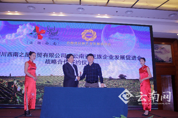 法国政府代表及企业家考察团、云南相关部门负责人及商会企业代表出席会议。会议期间,法国西南在中国的运营机构四川西南之屋与省民族企业发展促进会签订战略合作协议。