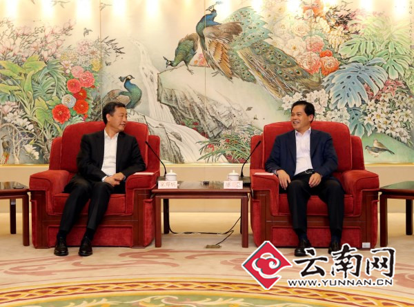 5月18日,省委书记陈豪在昆明会见了中国建筑工程总公司党组副书记、总经理王祥明一行。记者 雷桐苏 摄