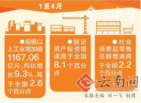 云南省统计局近日发布的数据显示:1至4月,全省工业经济高开稳走,固定资产投资增速平稳,消费市场保持稳定,财政收支、交通运输均保持较快增长。经济运行呈现稳中有升,稳中有进,稳中向好的态势。