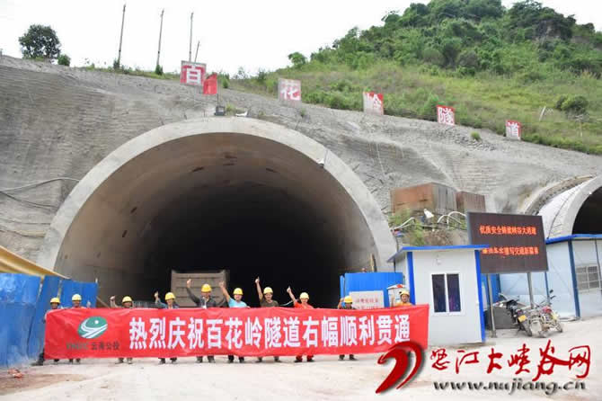 百花岭隧道顺利贯通,为保泸高速公路全线动工打下坚实基础。
