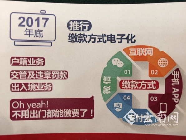 20、2017年9月30日前,推行交通违法缴纳罚款电子化;2017年12月31日前,推行公安户籍、交管、出入境业务缴款电子化,实现应用互联网平台、手机APP、支付宝、微信等以电子渠道为主体的多种缴款方式。