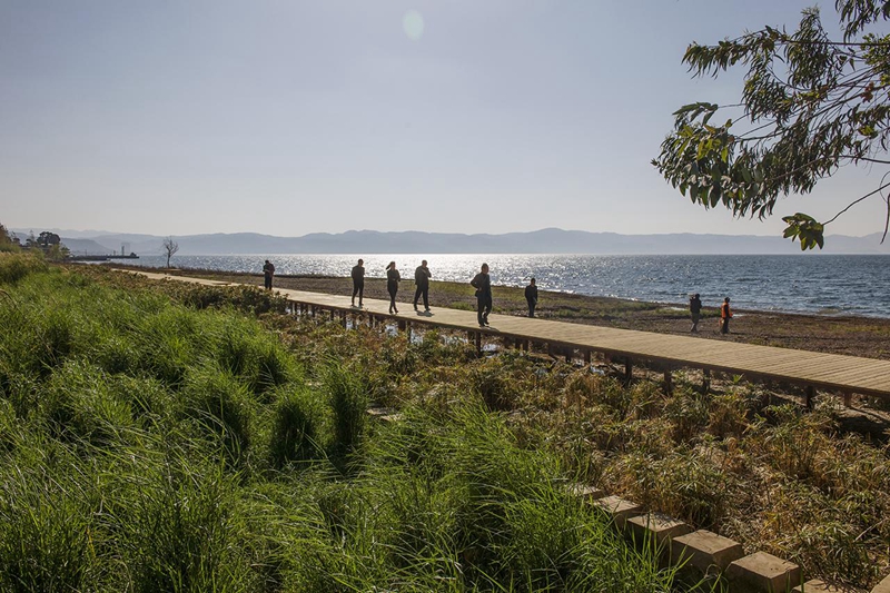 全长约28公里的抚仙湖时光栈道贯通,面貌一新的湖岸环境为广大群众提供了更多亲湖空间。3米宽的栈道沿湖而建,漫步其间,抚仙湖美景一览无余。抚仙湖时光栈道是环抚仙湖北岸的一条生态观光走廊,西起尖山小学,东至海口大石洞,全长约28公里,栈道宽3米,项目投资概算约1.2亿元。沿途穿过抚仙湖北岸生态湿地、林海公园、月亮湾湿地、樱花谷等地。 群众纷纷表示,栈道的修建丰富了抚仙湖沿岸的美丽景观带,为前来澄江县旅游的游客提供了又一好去处。 据项目施工方负责人介绍,栈道建设内容包括新建生态栈道、自行车道、原有设施改造、景观配套设施和绿化工程等。项目综合评价抚仙湖北岸流域环境承载力,充分挖掘地方文化,借助良好的景观资源塑造优美景致,完善抚仙湖旅游配套设施,全力打造自然、健康、休闲的特色湖滨生态游览区。(玉溪日报特约通讯员陈超 通讯员王敏)