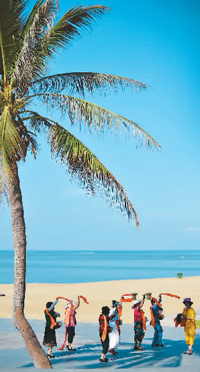 游客在海南休闲度假