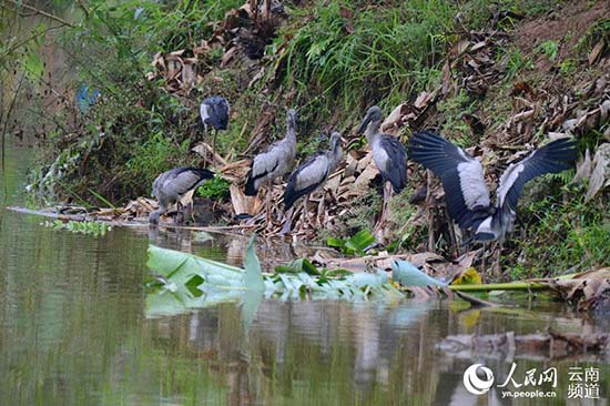 珍惜濒危鸟类钳嘴鹳大规模现身云南金平