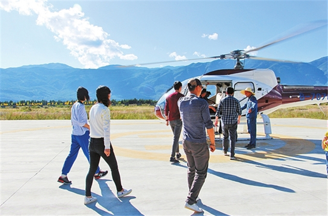在离纳西文化体验馆10多公里的丽江直升机空中游览基地上,很多游客正在等候区等候。“公司从2015年进驻丽江以来,每天直升机飞行的架次由原来的三四个架次增长到如今的近20个架次。”云南环球通用航空有限公司驼峰丽江直升机空中游览项目副总经理刘国勇说,随着人们生活水平的提高,旅游消费越来越成为大众消费,大家也愿意把钱和时间都花在选择体验更丰富的特色旅游上。