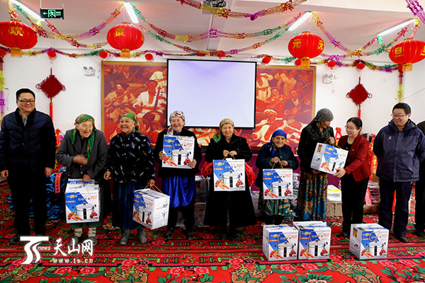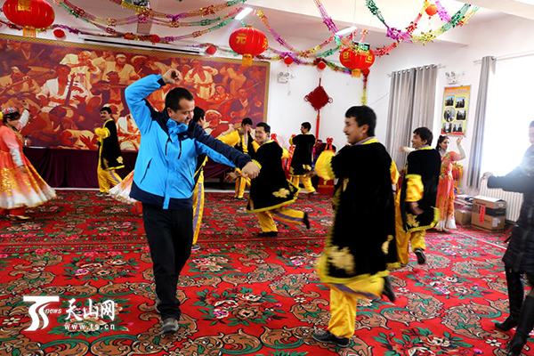 村民艾克拜尔·阿布来提说:“我太高兴了,从小我就爱跳爱唱,工作队来了后有了自己的文艺队,自编自演还外出演出,不仅有钱挣还有爱好发挥的地方。今天工作队送了新年礼物,感谢他们!”