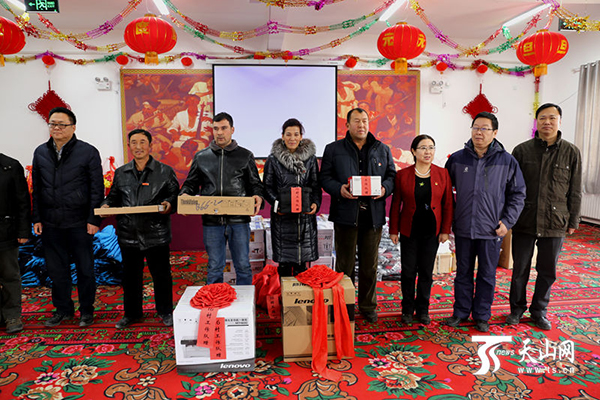 迎接新年,工作队还给大家送来了礼物,给村“两委”班子的佳能相机、联想台式电脑、激光打印机,给孤寡老人的新厨具、文艺队的新队服,给幼儿园小朋友们的新园服……