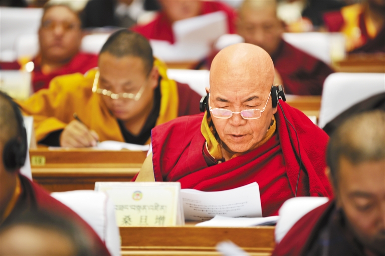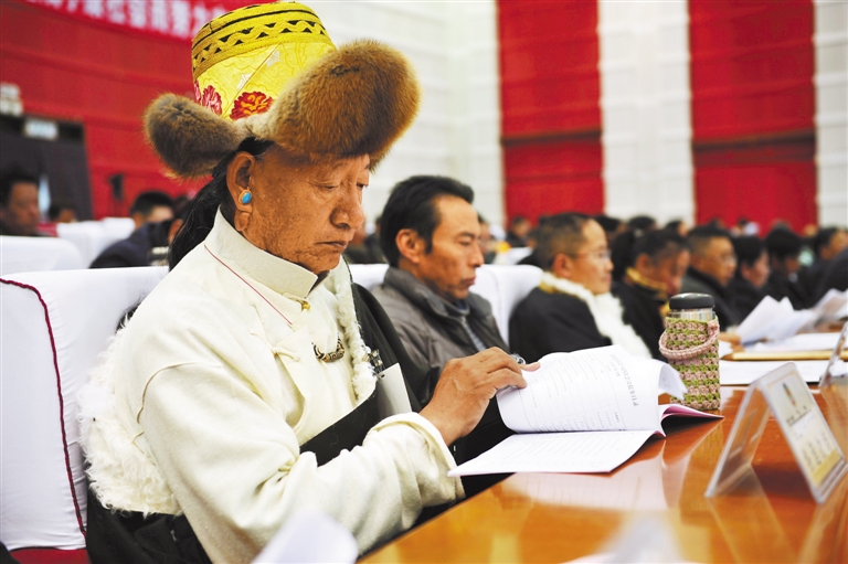 参会的自治区政协委员正在认真阅读相关资料。 记者 丹增群培 摄