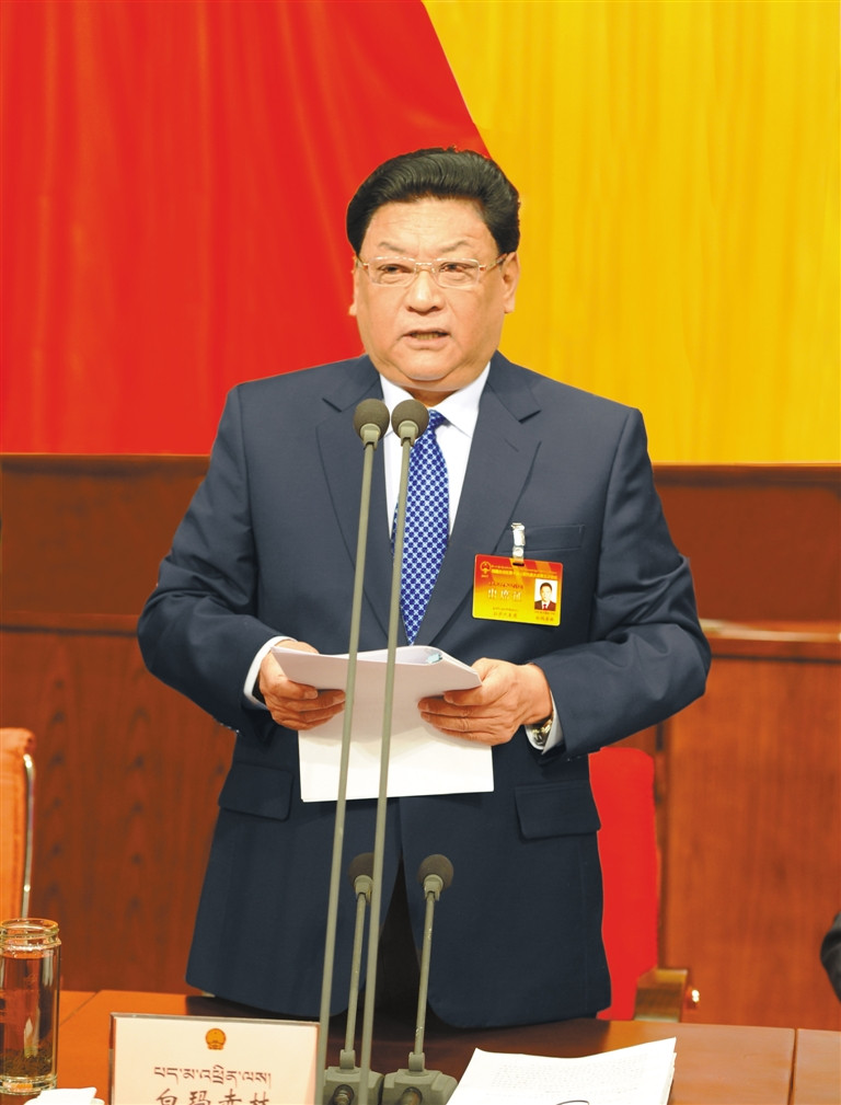 白玛赤林主持 洛桑江村代表自治区人民政府向大会作政府工作报告