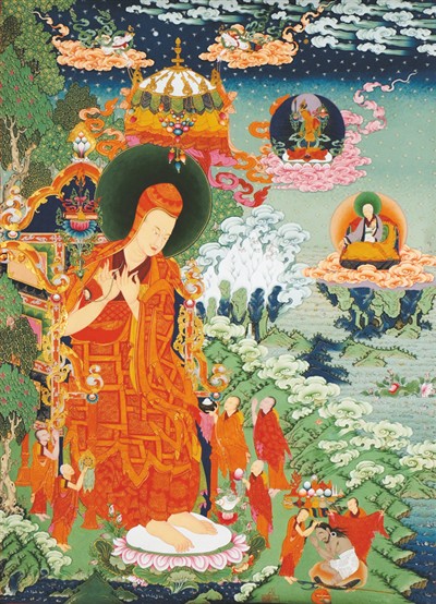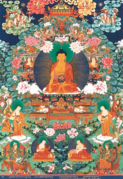 1300多年前的松赞干布时代,佛教自印度传入西藏,并与西藏本土宗教苯教融合在一起,逐渐发展成为现代的藏传佛教。唐卡正是阐释藏传佛教教义内涵的艺术表现,是藏族人辅助宗教修持的圣物。美术理论家王镛认为:“唐卡是来自东方的艺术瑰宝,它综合了西藏、印度、汉地的元素,可以说是藏传佛教的图像化表现。”
