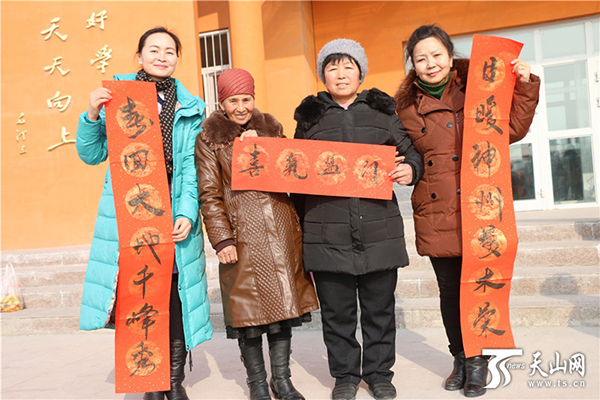 联谊会结束后,博湖县教育部门的干部职工和自己的“亲戚”来到食堂,共吃团圆饭。在送别“亲戚”时,干部职工纷纷拿出特意带来的精美礼品,送给自己的“亲戚”,并拍了“全家福”,记录下这美好、难忘的一刻。